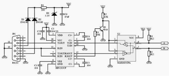 樓主(閱讀:4244/回復(fù):0)無源RS232轉(zhuǎn)RS485RS232 -485轉(zhuǎn)換器主要包括了電源、232電平轉(zhuǎn)換、485電路三部分。本電路的232電平轉(zhuǎn)換電路采用了NIH232或者也可以直接使用MAX232集成電路,485電路采用了MAX485集成電路。為了使用方便,電源部分設(shè)計成無源方式,整個電路的供電直接從PC機的RS232接口中的DTR(4腳)和 RTS(7腳)竊取。PC串口每根線可以提供大約9mA的電流,因此兩根線提供的電流足夠供給這個電路使用了。經(jīng)實驗,本電路只使用其中一條線也能夠正常工作。使用本電路需注意PC程序必須使串口的DTR和RTS輸出高電平,經(jīng)過D3穩(wěn)壓后得到VCC,經(jīng)過實際測試,VCC電壓大約在4.7V左右。因此,電路中要說D3起的作用是穩(wěn)壓還不如說是限壓功能。 MAX485 是通過兩個引腳RE(2腳)和DE(3腳)來控制數(shù)據(jù)的輸入和輸出。當(dāng)RE為低電平時,MAX485數(shù)據(jù)輸入有效;當(dāng)DE為高電平時,MAX485數(shù)據(jù)輸出有效。在半雙工使用中,通?梢詫⑦@兩個腳直接相連,然后由PC或者單片機輸出的高低電平就可以讓MAX485在接收和發(fā)送狀態(tài)之間轉(zhuǎn)換了。由于本電路 DTR和RTS都用于了電路供電,因此使用TX線和HIN232的另外一個通道及Q1來控制MAX485的狀態(tài)切換。平時NIH232的9腳輸出高電平,經(jīng)Q1倒相后,使MAX485的RE和DE為低電平而處于數(shù)據(jù)接收狀態(tài)。當(dāng)PC機發(fā)送數(shù)據(jù)時,NIH232的9腳輸出低電平,經(jīng)Q1倒相后,使 MAX485的RE和DE為高電平而處于數(shù)據(jù)發(fā)送狀態(tài)。 ![]() 歡迎使用串口論壇 波仕與您暢游RS232/RS485串口的世界