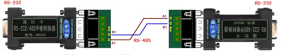 這是典型的一對(duì)一RS-232通信,兩個(gè)RS-232各接一個(gè)485A2轉(zhuǎn)換器,中間布一個(gè)專(zhuān)用的RS-485總線。有幾對(duì)RS-232通信,就得布幾根RS-485總線。如果RS-485總線很長(zhǎng),那么布線成本就很高。