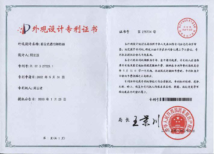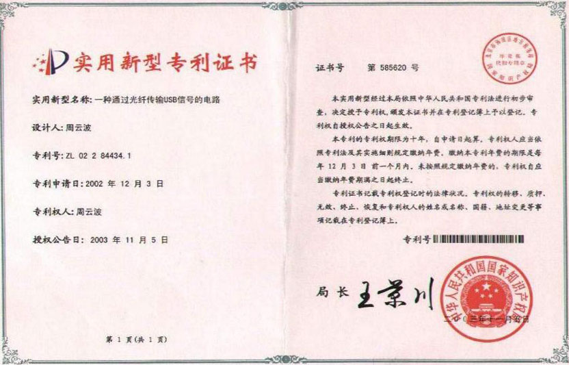 2004年:世界上第一個(gè)USB光纖延長(zhǎng)器(OPET-USB2